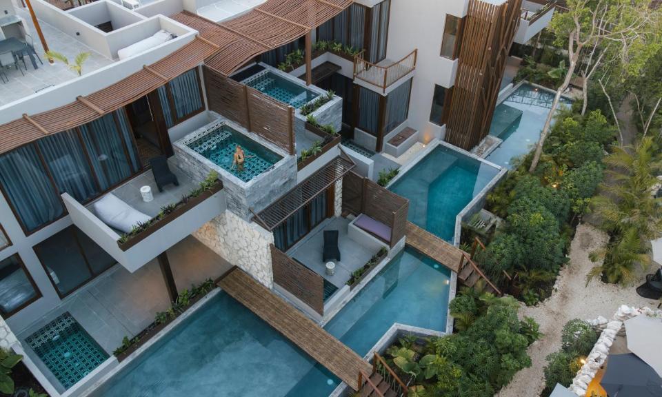 Unser vernetztes Schwimmbadnetz bildet ein aquatisches Geflecht, das jede Ecke unseres Refugiums umarmt. Stell dir vor, du verlässt deine eigene private Suite und tauchst in einen erfrischenden Pool ein, ein verborgenes Juwel in unserem Heiligtum. Privatsphäre trifft auf Luxus, da jede Suite ihre eigene persönliche Oase hat.
